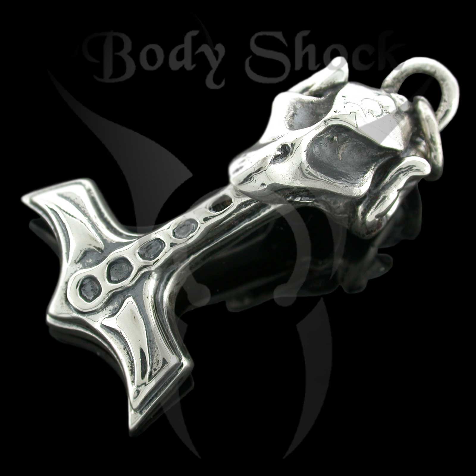 Silberanhänger - Thor's Hammer mit Widderkopf
